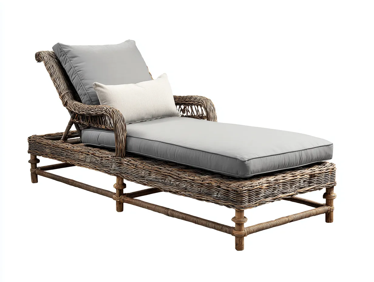 Sonnenliege-Rattan-Textil-Holz-194x76x90 cm-Natur-Grau-Rustikal Modern